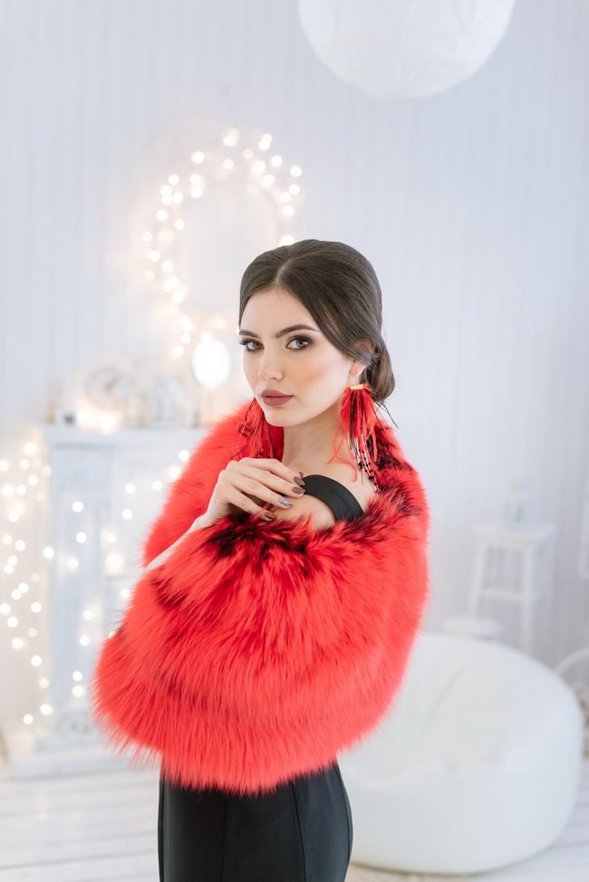 | Информация по меху | Лисица крашеная ярко-алого цвета |