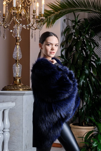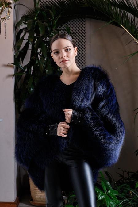 Роскошный жакет кроя "летучая мышь" из натурального меха лицы. В модном ультрамариновом цвете. В единственном экземпляре. Универсальный размер 44-48.