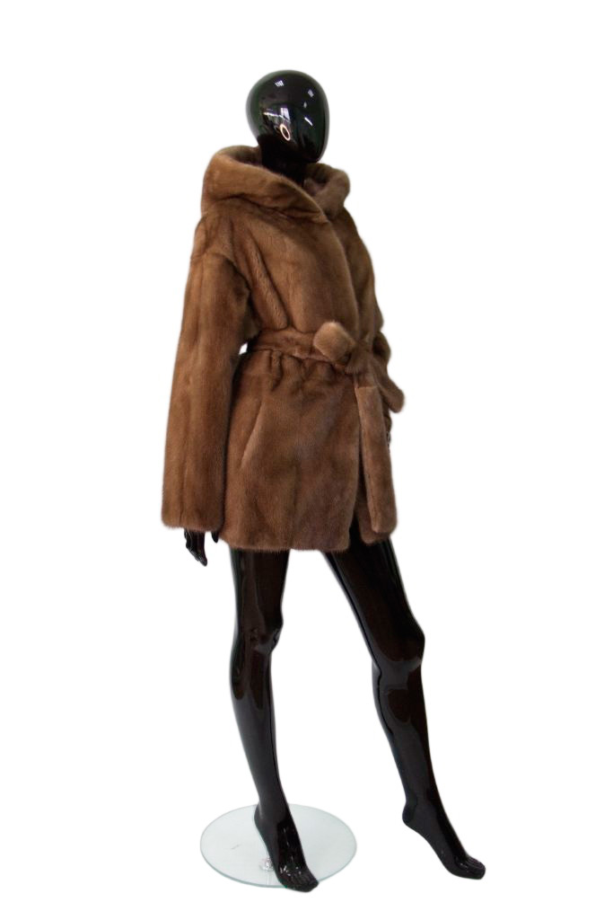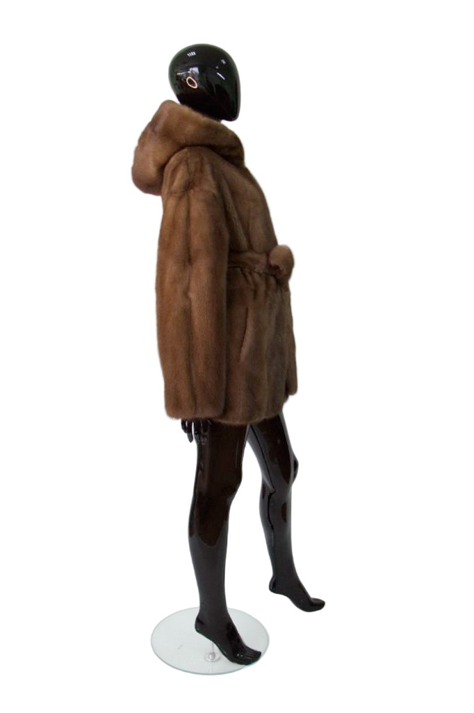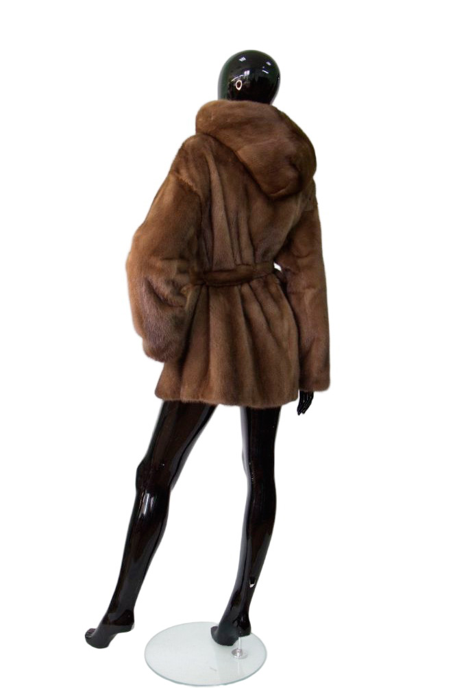 Шуба выполнена в насыщенном коричневом цвете, который подчеркивает её роскошь, изысканность и натуральность. Мех норки отличается своей мягкостью и блеском, что обеспечивает не только тепло, но и эстетическое удовольствие. Капюшон, интегрированный в дизайн, добавляет практичности и защищает от непогоды, при этом не теряя своей элегантности.