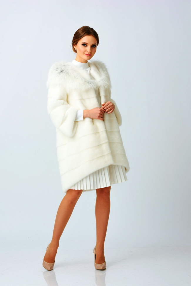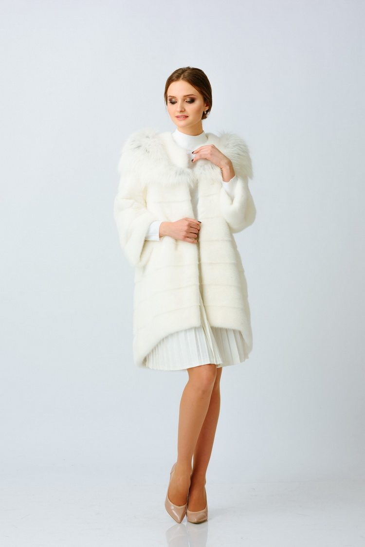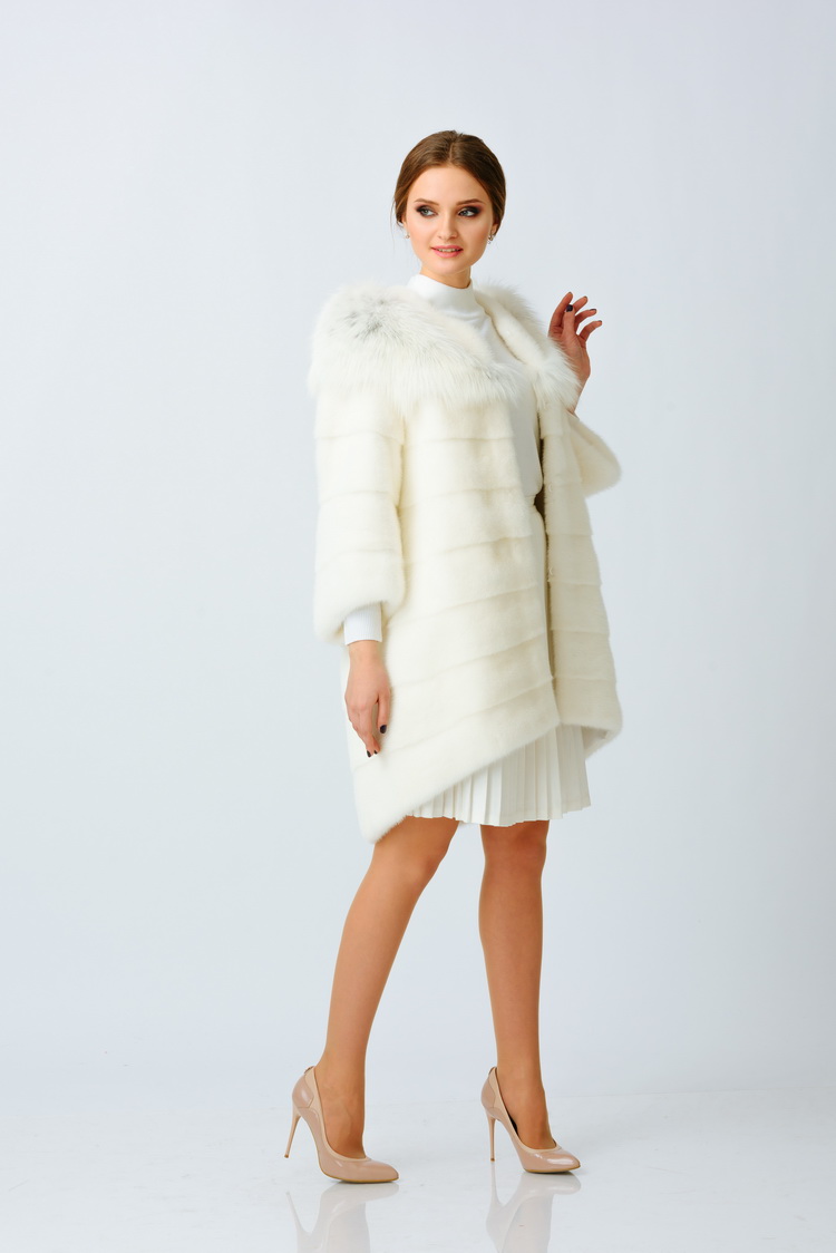 Шикарное полупальто из меха норки, декорированное Снежной лисой, сделает Вас неотразимой и самой модной. Модель прямого, свободного кроя, слегка заужена к низу. Имеет асимметричный низ, поперечное расположение шкурок, укороченный рукав. Изготавливается под заказ в разных размерах, обширная цветовая гамма. Индивидуальный пошив.